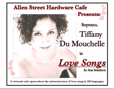 Love and music are two of most recognized universal languages.“Love Songs” is an unaccompanied opera for solo soprano. Through the primary text, “I love you”, set in 100 languages, the story centers around the many types of love: from a child’s love, to the love of a parent, and all of the many loves in between.