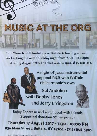 Music At The Org is beginning its Thursday Music and Arts Night on August 17 from 7:30-10 pm. This week's special guests are Buffalo Philharmonic's Sal Andolina with Bobby Jones, Jerry Livingston and Paul Fidale. Come relax and enjoy an evening of soulful Jazz and R&B.