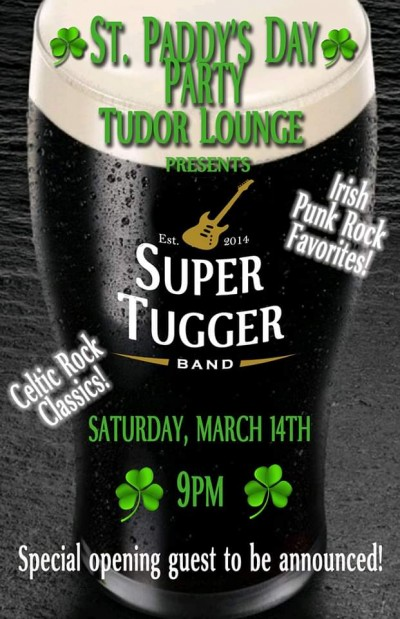 Come to THE TUDOR LOUNGE on Saturday March 14th for the Third Annual Super-Tugger St. Paddy's Day Party! We'll be playing all your favorite songs by the Pogues, Dropkick Murphys, Flogging Molly, Stiff Little Fingers, Gang Green, The Tossers, and many, many more! It's a great way to finish up the day after the Old First Ward St Patricks Day Parade!
