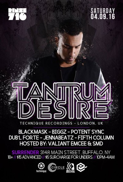 Tantrum Desire will be making their Buffalo debut on Saturday April 9th, 2016 at Surrender Nightclub. This event is hosted by Rinse 716. Ages 18+ with proper ID. $15 advance tickets available, more at the door.