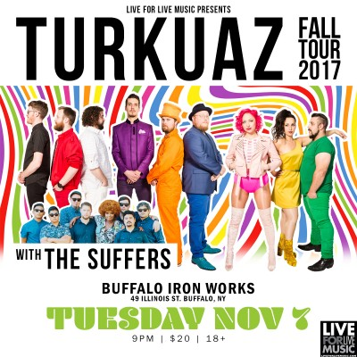 49 Illinois St Buffalo, NY 14203With the release of their album Digitonium, Turkuaz’s sound is more accessible than ever and poised to break out to a more mainstream audience. With a playful feel that evokes the best of 80s dance music, Turkuaz’s tightly arranged songs are built on thick grooves, driven by powerhouse rhythm and horn sections, as well as four distinct vocalists.