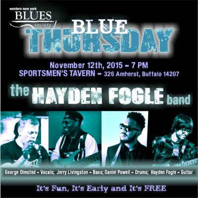 Young sensation plays the Blues like nobody's business!! Featuring The Hayden Fogle Band at The Wny Blues Society's Blue Thursday event at The Sportsmen's Tavern Nov. 12th at 7pm. This is a free event, everyone welcome!!!