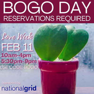 Show your love for a frontline worker, family member, co-worker, friend, date, or loved one during LOVE WEEK with Buy One, Get One! Buy one admission ticket and get one of equal or lesser value free.