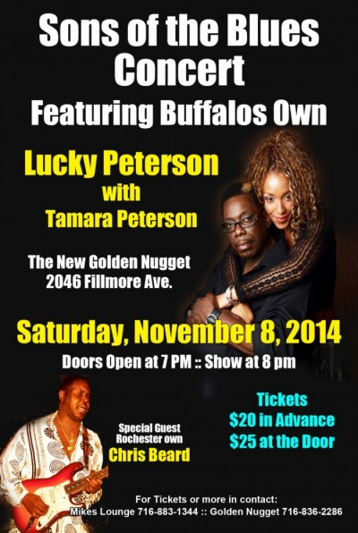 "Sons Of The Blues" will feature one of the best blues guitarist & keyboardist ever who's from Buffalo NY Lucky Peterson with special guest Chris Beard from Rochester. Both artist fathers were well known Blues Men as well.