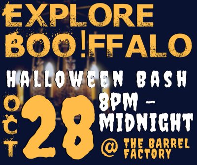 Come raise the spirits with Explore Buffalo! Join us at the Barrel Factory in the Old First Ward for a spooky good time with supernatural entertainment, revolting refreshments, and unique cocktails from Lakeward Spirits. Take a walk through our Founding Buffalonians Cemetery and wear your best BOO!ffalo-themed costume for a chance to win a creepy prize! Costume contest judged by a panel of local celebrities. Prizes awarded for Best Buffalo-themed, Best Couples, and Best Overall. Don't forget to check out the Mummy Wine Wall and the Casket Raffle (additional costs) for a chance to bring some spirits home with you!