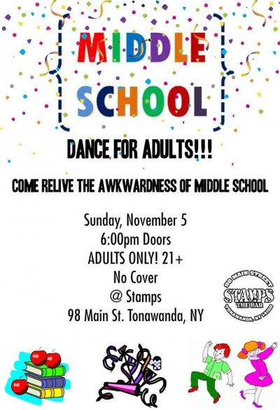 Come down to Stamps on Sunday, November 5th for our Middle School Dance for Adults! Find a date, or just go solo! We'll be playing old school-school dance staples all evening, and serving many elusive "Adult Beverages!"