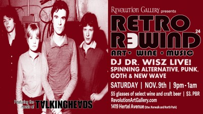 Revolution Gallery celebrates the music of Talking Heads on Saturday, November 9th for our monthly dj dance event “Retro Rewind.”