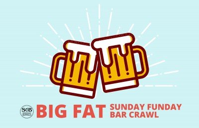 The Big Fat Sunday Funday Bar Crawl is a 21+ event. This event is rain or shine, since most of the time crawlers will be at bars and also there’s this thing called umbrellas.