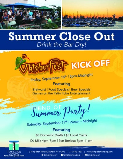 Join Templeton Landing at their Summer Close Out Party. Determined to "Drink the Bar Dry" to end the Summer, Templeton Landing will host a two-day party: