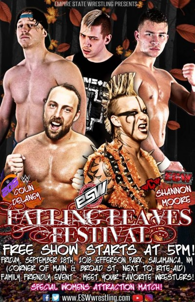 Empire State Wrestling (ESW) will return to the Falling Leaves Festival, Jefferson Avenue Park, Salamanca, NY on Friday, September 28. The event is free of charge and will be located near the corner of Main and Broad Streets, next to Rite Aid. This family friendly event stars at 5 p.m.