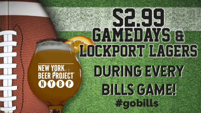 Announcing the Gameday Loft! Watch the Buffalo Bills on the big screen, and join us for the ultimate Gamday Special: $2.99 pints of Gameday and Lockport Lager during every Bills game! Our 16 oz. pours make this the best deal in town, and paired with your favorite Gameday snacks (Buffalo Chicken Wing Dip, Buffalo Wings, Pizza and more!), there is no better spot to root for your favorite team. Let's Go Bills!