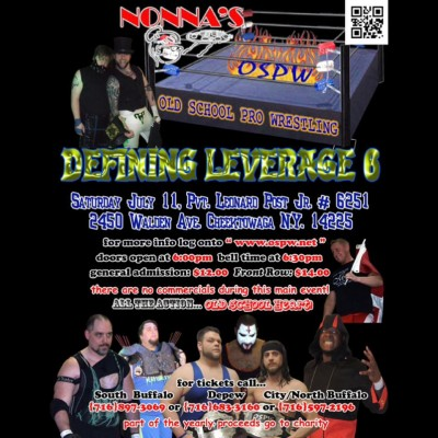 OSPW'S last stop before Wrestlefest 13! Don't miss any of the action that will unfold leading up to the next event. OSPW`s Sat. July 11th Defining Leverage 6 Partial Card Announcement! YOU wil see, a Six Man Scramble Match between - Da Latin Soldier- Tommy Mandrake- Anarchy- Venomous- Lucain Caiker and David Evans with BOTH the OSPW JR TV & TV Titles on the line! Tyger Smith is set to defend his OSPW NY Title! Sons of Fortune-( West & Everynite ) take on 25 to Life ( Elmo & JD ) with The OSPW Tag Titles at stake!