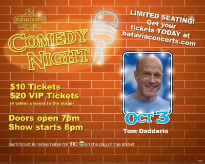 Tom Daddario comes to Batavia Downs Gaming & Hotel for a night of comedy! $10 General Admission | $20 VIP (First row of tables)