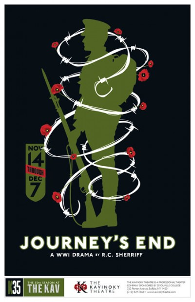 320 Porter Avenue Buffalo, NY 14201 THIS EVENT HAS PASSEDThe Kavinoky Theatre, a professional theatre owned and sponsored by D’Youville College, is pleased to announce its upcoming production of JOURNEY’S END by R.C. Sherriff. This WWI drama is directed by Robert Waterhouse and features Christian Brandjes, Louis Colaiacovo, Christopher Evans, Tim Joyce, Stan Klimecko, Geoff Pictor, Norman Sham, PJ Tighe, Guy Wagner, and Joseph Wright. The production will open on November 14 and run a limited four-week production through December 7, 2014.