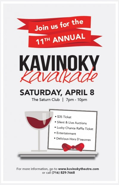 Enjoy spectacular auction items, delicious hors d'oeuvres, great entertainment and, of course, libations at the Kavinoky's 11th annual Kavinoky Kavalkade fundraiser on Saturday, April 8th, at the Saturn Club with a ticket price of just $35.