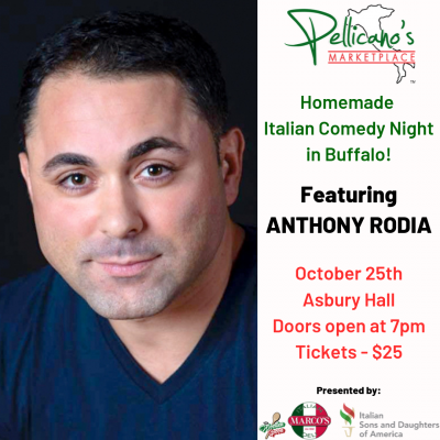 341 Delaware Avenue Buffalo, NY 14202Anthony Rodia will be making his Buffalo debut at Asbury Hall! The hilarious Italian American stand up comic will be in Buffalo for ONE NIGHT ONLY for Buffalo’s first-ever Italian Comedy Night! Sponsored by Pellicano’s Marketplace.