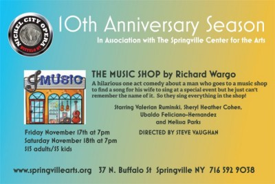 A one act opera in English. The hilariously funny modern opera, ‘The Music Shop’ by Richard Wargo, is based on a story by Anton Chekhov about a man (tenor Ubaldo Feliciano) instructed by his wife (soprano Melissa Parks) to go to a music store to buy her a piece of music to sing for a prestigious event.