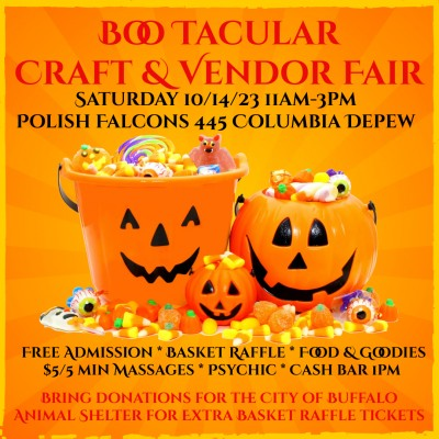 Come on out to support your local small businesses. We have some fabulous and unique crafters as well as some of your favorite vendors. There's something for everyone! Basket Raffle! $5/5 min mini massages! Psychic! Goodies! Cash Bar at 1!. Bring donations for the City of Buffalo Animal Shelter for extra tickets. No need to be present to win. Bookings only through Maria at eventpreneurpro@gmail.com