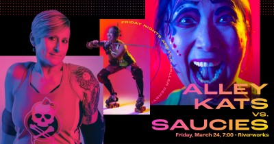 The 2023 home team season continues with the Saucies vs. the Alley Kats. This is the second bout for both teams and is the first time the Saucies and the Kats have faced off since the last full length season in 2020. The event will be held at Riverworks. Doors open at 6:00pm, first whistle at 7:00pm. Be sure to get your tickets early as front row seating will sell out quickly.