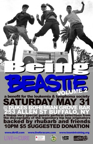 Being Beastie. Saturday May 31. Doors open at Duke’s Bohemian Grove Bar at 10pm, $5 minimum suggested donation. For more information, visit www.dtr45.com or www.liveforacure.com