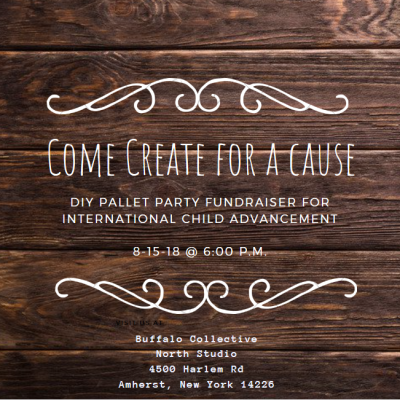 Plan your next wine Wednesday with International Child Advancement! We will be hosting a fundraiser with Buffalo Collective on August 15th. This is the perfect opportunity to create unique home decor while giving back. Each ticket includes your own 12x12 wood pallet to create with 10 designs to choose from. Wine & Beer will be available for purchase.