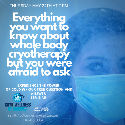 Cryo-Wellness of America holds their first one-hour educational seminars at 6301 Transit Rd, Depew. Our seminar explains the history of cold therapy and research on the effects. We will review reasons why individuals choose to use the Whole Body Chamber, how to prepare and dress for your treatments and costs. We will also review contraindications which exclude individuals from initiating treatment.