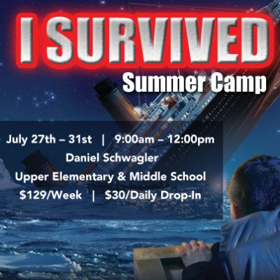 Lauren Tarshis' I Survived series tells true stories about natural disasters and other catastrophic events and takes the reader into the heart of the event. During our week-long I Survived summer camp, campers will learn about five epic disasters. Learn about The Children's Blizzard of 1888 and compare snowfalls from Buffalo's most famous winter snowstorms. Discover the "unsinkable" ship, The Titanic, and create your own iceberg science experiment. Read about The Great Boston Molasses Flood and immerse yourself into life in the 1900s. Revisit The Japanese Tsunami of 2011 and uncover how tsunamis are created. Experience The Henryville Tornado of 2012 and create your own tornado in a bottle.