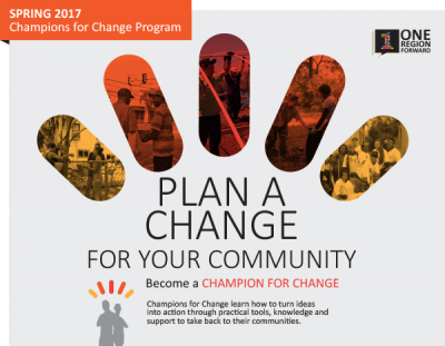 School is back in session! This spring, the University at Buffalo School of Architecture and Planning, Blackstone LaunchPad, and It Takes A Village Action Organization are hosting the third semester of the One Region Forward Champions for Change program. Residents of Erie and Niagara counties that have an idea for sustainable change in their community are encouraged to apply. Selected Champions will receive free hands-on technical support and learning opportunities to help grow their project idea toward implementation.