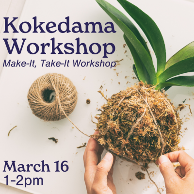 Join us in creating a beautiful decorative orchid display, through Kokedama! Kokedama is the Japanese art of growing plants in a moss-covered ball of soil. These displays are often wrapped with string or filament fishing line. In this workshop plant your own orchid using the artistic method of Kokedama. Join us in creating a beautiful string garden!