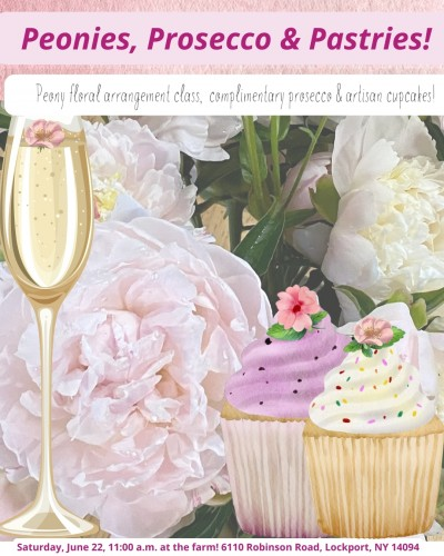 6110 Robinson Road Lockport, NY 14094Enjoy one of our favorite classes, THE PEONY CLASS! You’ll learn to create and take home a bodacious peony centerpiece with fresh-picked organic peonies grown on the farm. Marina will teach you how to pick peonies at the perfect time to avoid ants! She will also show you how to wrap and store peonies in the fridge to bring out at a much later date! We will sip prosecco and enjoy designer cupcakes. *This is a 21+ over class.