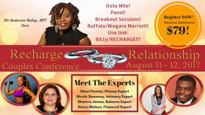 This Couples conference targets topics of Financial Wellness and Planning, Health and Wellness, and Intimacy Strengthening. Hosted by RD Anderson-Bailey, MFT of The Relationship Decoder, LLC. The experience includes an All White Party, Break out sessions, Vendors and so much more!