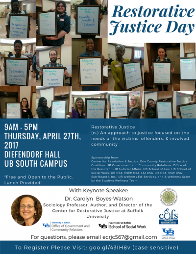 Join us at UB for a full day of Restorative Justice workshops and discussion.