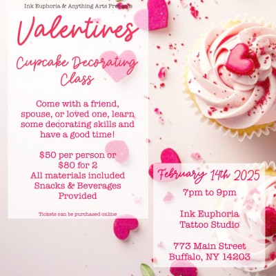 Come join us for a sweet evening of cupcake decorating! Whether you're a pro or a beginner, this event is perfect for spreading love and creativity. Grab your friends or come solo - either way, you'll have a blast. We'll provide all the supplies you need, just bring your enthusiasm and maybe a sweet tooth! Let's celebrate love and art together with sprinkles and frosting. See you there!