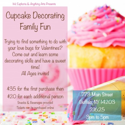 773 Main Street Buffalo, NY 14203During the event, you’ll learn essential decorating techniques and tips from our experienced instructors, who will guide you through the process of frosting, piping, and embellishing your cupcakes with a variety of colorful icing, sprinkles, and edible decorations. It’s a fantastic opportunity to bond with loved ones while enjoying sweet treats and laughter. Whether you’re a seasoned baker or a beginner, you’ll leave with a box of your delicious creations and cherished memories.