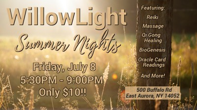 There will be classes on the half hour between 5:30 and 8:30pm (included with admission price) on many of the services offered at WillowLight Center for Wholeness.