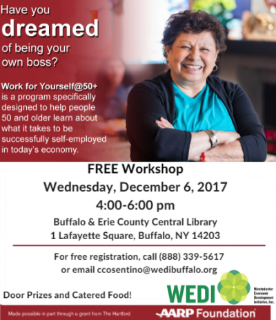 A free AARP-sponsored workshop for anyone over 50 who is interested in learning about starting a business or becoming self-employed!